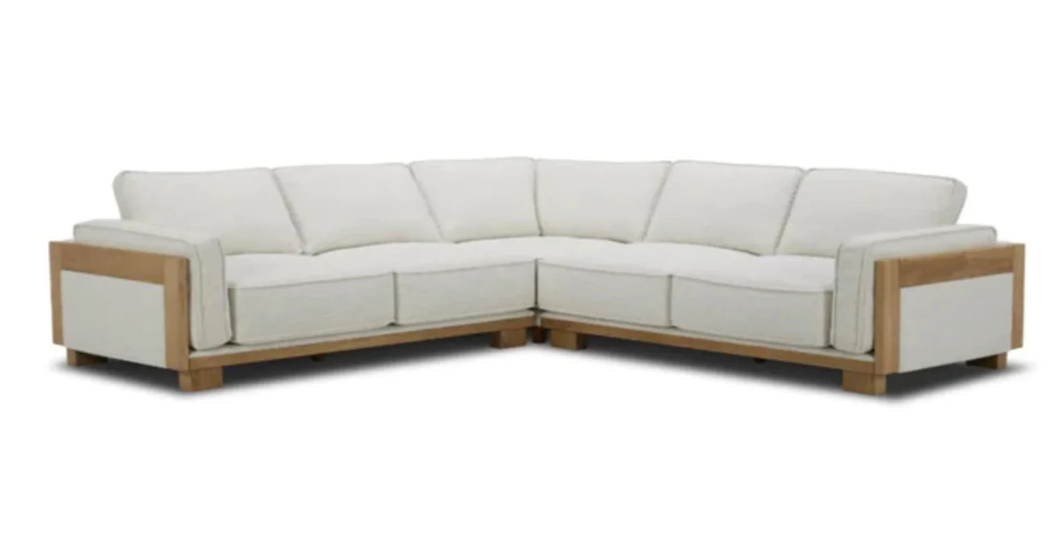 Introducing our Madison Sectional. Contemporary, comfortable and rich define these two lifestyles in this sectional. Made in the rich boucle textured fabric. Solid exposed timbers gives it a California lifestyle feel.