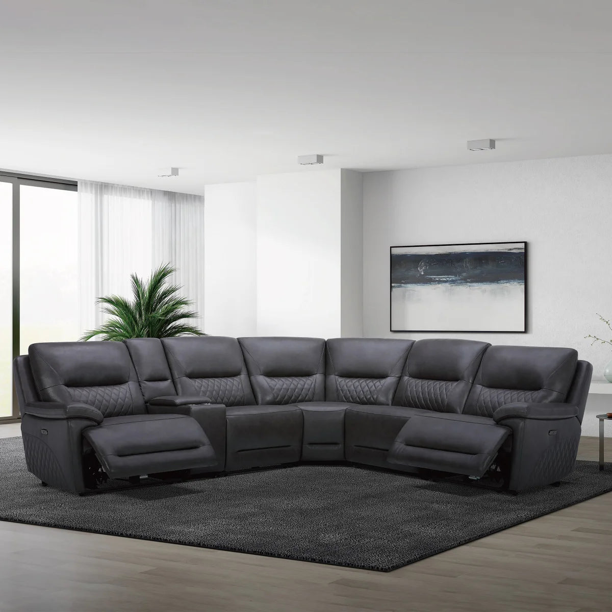 Ryerson 6-piece Power Reclining Leather Sectional with Power Headrests